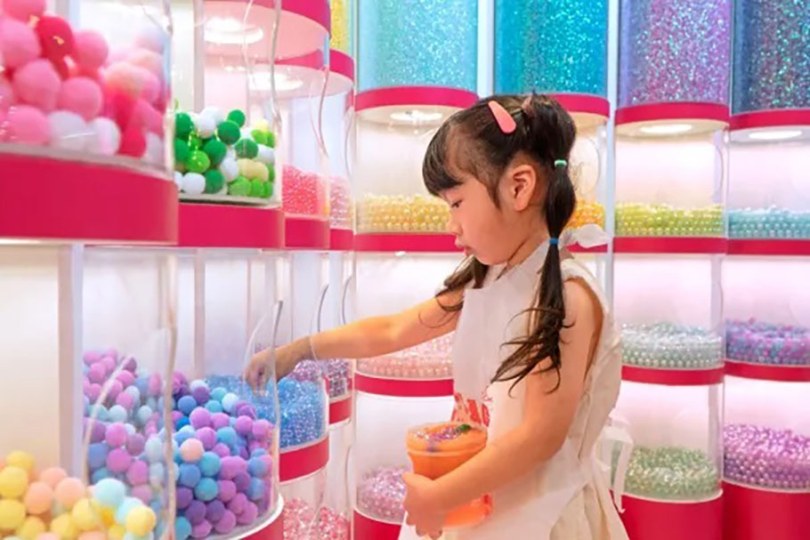 桃粉紅色的大空間中,孩子們專注著攪拌、拉提,甚至是鑽進大型史萊姆泡泡裡,最受孩子們喜愛的GAGA monster史萊姆怪獸星球也降落新店裕隆城囉!史萊姆是一種由膠水、水混合而成的粘液狀物質,觸感介於液體與固體之間,黏呼呼又不會沾手十分特別。因市面上製作史萊姆的原料品質參差不齊,身為爸媽的創辦人為了讓熱愛史萊姆的女兒Queeny能夠安心創造、把玩,便在台灣各地尋找最優質的材料,不只給予自己的女兒,也希望來到這裡的小朋友們都能安心的遊玩,透過五感啟動創造與想像力,展開星際間與怪獸共同探險的旅程。